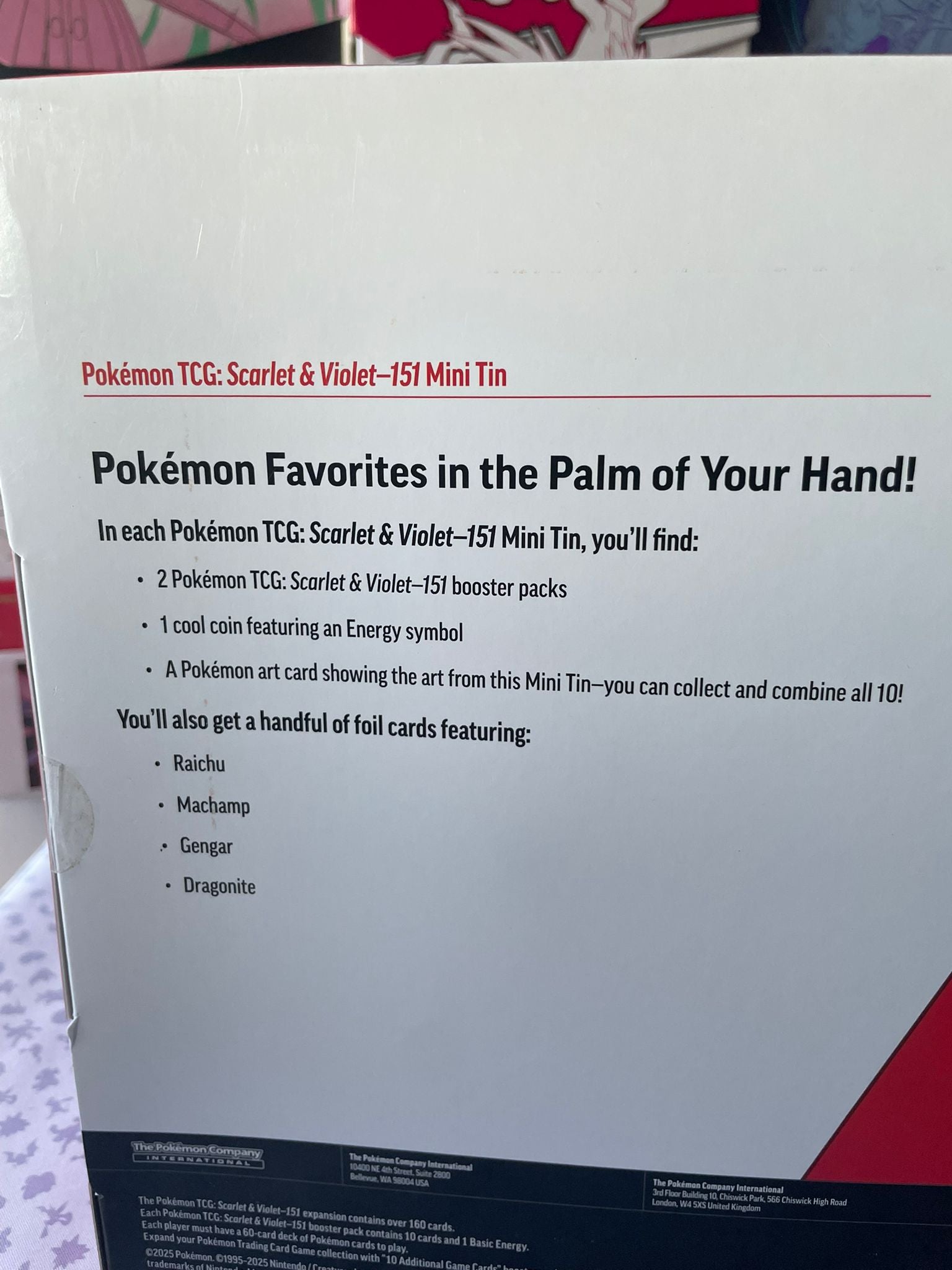 Each box includes 4x Pokemon S&V 151 Mini tin and 4 promos.